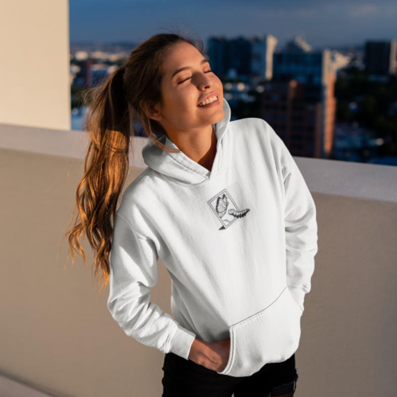 Caterpillar/Butterfly Embroidered Unisex Pullover Hoodie
