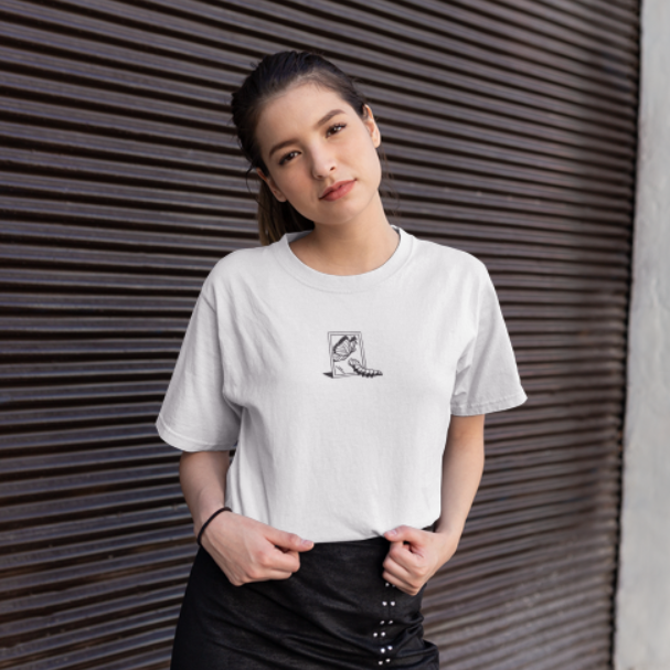 Caterpillar/Butterfly Embroidered Unisex Crewneck T-shirt